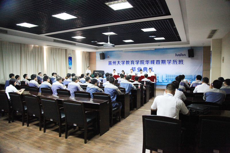 温州大学成人教育学院党委书记周建平、副院长唐苏琼、集团董事局主席尤小平、总裁林建一、党委书记周品英等领导出席毕业典礼,华峰首期学历班全体学员参加典礼并领取毕业证书。毕业典礼由林建一总裁主持。