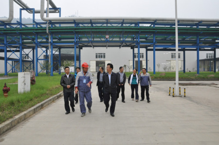 刘副主任一行在集团副总裁、重庆华峰化工总经理陈恩之的陪同下,先后参观了公司总调度室、中心控制室、己二酸成品仓库、包装车间和二期项目建设现场,并认真听取了陈总关于己二酸一期生产页岩气供应情况和二期项目建设进度的汇报。