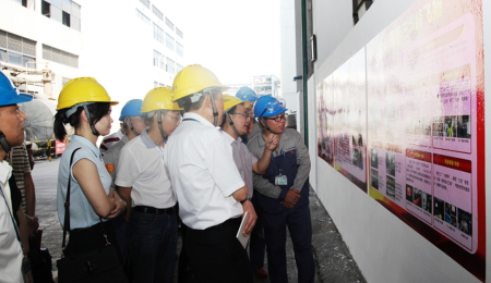 周建强处长一行参观了新材料/合成树脂公司合成树脂工厂,新材料公司党总支第七党支部书记童彬彬对该支部今年开展的“有厂·有家·有幸福”系列活动进行了详细解说。解说过程中,周建强处长频频点头,不时驻足,亲切询问相关创建工作,他充分肯定了该支部“自主党小组”创建所作出的成绩,同时他也勉励企业党员要立足岗位,敢于亮身份、亮承诺,在突发事件和“急、难、险、重”任务中,乐于吃苦、甘于奉献,充分发挥先锋模范作用;同时他也希望企业党组织切实发挥政治功能,将党的精神、政策及时灌输到周边的党员、群众当中,使职工群众在潜移默化中接受党的教育和引导,推动企业组织融合、促进工作融合、推进文化融合。