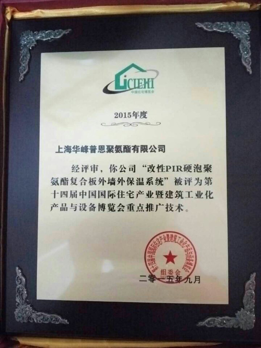 展会上,以华峰普恩“PH”板为核心材料构建的“改性PIR硬泡聚氨酯复合板外墙外保温系统” 被评为本届博览会重点推广技术,是唯一获此殊荣的聚氨酯保温材料生产企业。从而为今后市场的开拓和推广,特别是向高端应用领域的迈进打下了基础,并且领先同行拿到了准入证。