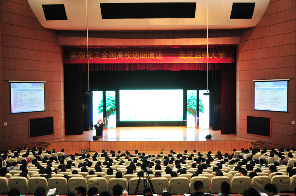 是日下午14点30分,在1000余名温州大学师生和多家媒体的见证下,来自温州市10家化工企业代表携手登台,在华峰集团总裁林建一的引领下,郑重宣读了《“美丽化工”温州宣言》。铿锵有力的声音在会场内响起,彰显了温州化工同仁们共同致力于“美丽化工,美丽温州”建设的信心与决心。
