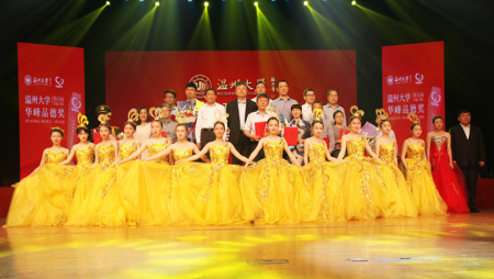 温州大学校长李校堃、党委副书记牟德刚,集团党委书记周品英、总经理助理邹宗钧等校企领导出席颁奖典礼并为获奖者颁奖。(林加浩)