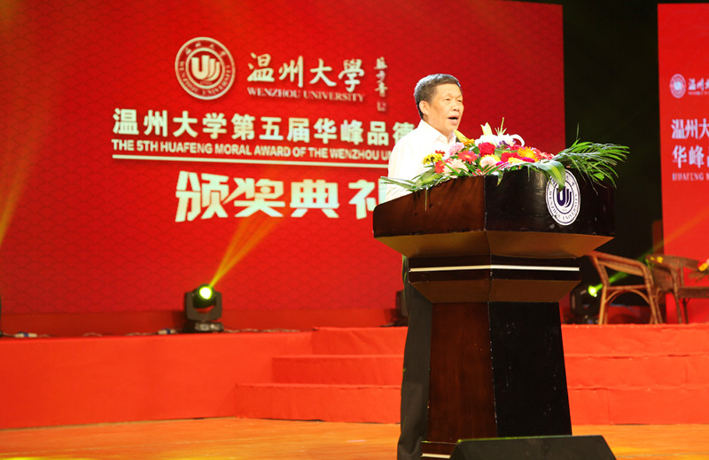 颁奖典礼上,面对道德楷模和感人事迹,集团党委书记周品英在致辞中有感而发。他说,华峰品德奖的设立、评选和颁发,是校企双方践行社会主义核心价值观的缩影,也是校企双方增进交流、深化合作的生动写照,其意义在进一步弘扬温大“厚培德本”的优良传统,践行华峰的“以德为先”的人才观念,共同推动学校和企业的思想道德建设。他认为,道德的力量是无穷的,是做人、立业、兴国的根本。他号召大家要以获奖者为榜样,从他们身上汲取精神力量,共同做文明道德风尚的践行者、倡导者、引领者,积极投身道德实践,不断提升品德修养和水平,用先进思想、模范行动和高尚情操立足社会、服务社会。