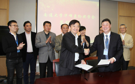 4月15日上午,南通大学“华峰氨纶奖学金”签约仪式在华峰集团综合办公楼会议室举行,这已是双方第四次举行该奖学金的签约仪式。南通大学校长程纯、副校长江应中和华峰氨纶董事长杨从登、华峰集团人力资源总监王利等参加签约仪式。