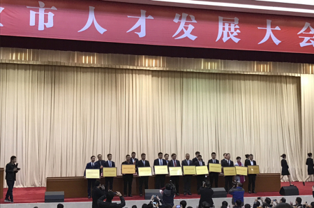 为鼓励先进、树立典型,12月7日,温州市召开全市人才发展大会。温州市委人才工作领导小组对全市人才发展做出突出贡献的优秀企业和相关部门进行了表彰,其中华峰集团有限公司被授予“温州市重才爱才先进单位”荣誉称号,集团总裁林建一作为代表在主席台从温州市委书记周江勇手中接过授牌。