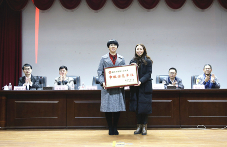 随后,重庆华峰化工公司副总经理、重庆华峰党委纪检书记徐淑媛从冉副主席手中接过授牌,徐总代表公司对区总工会长期以来对重庆华峰化工的帮助与支持表示衷心的感谢。她介绍说,一直以来,公司工会始终秉承着“企业与员工共同成长”的工作理念,在严格遵循上级部门各项重要指示的基础上,通过有序开展一系列广大员工喜闻乐见的活动,不断提高员工的生活质量与幸福感。她表示,公司将以此荣誉为起点,创新工作思路,延伸和拓展工作领域,充分发挥工会“桥梁”和“纽带”作用,进一步推进基层工会改革。