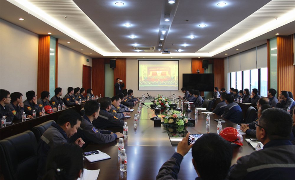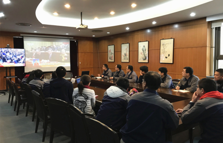 在集团行政大楼党政校教室收看开幕会现场,参加学习的公司党政领导和相关人员全神贯注,认真聆听,及时记录下报告的关键词、新提法和新亮点以及与企业发展紧密相关的有关论述,并在开幕式盛况结束后,进行交流讨论、畅谈感受。