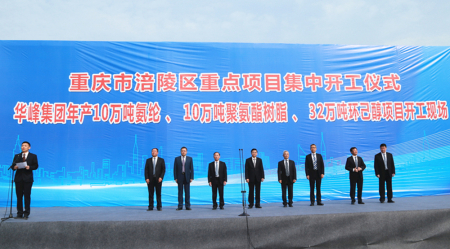 4月8日,华峰集团年产10万吨差别化氨纶、10万吨聚氨酯树脂和32万吨环己醇项目作为重庆市涪陵区重点项目,分别在重庆华峰工业园氨纶项目现场和涪陵金科酒店,集中举行开工与签约仪式。