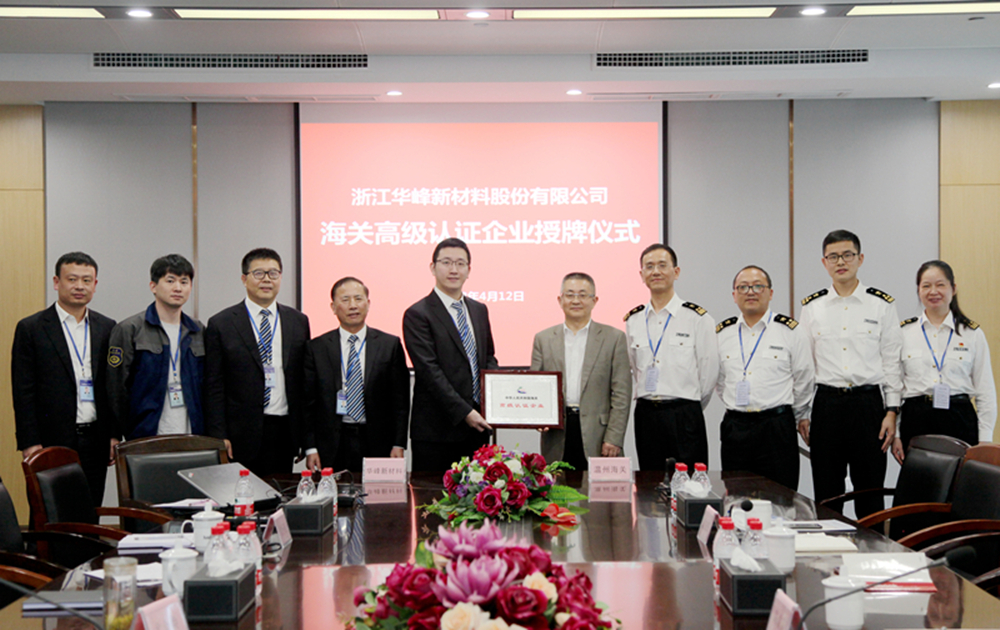 4月12日,华峰新材料公司AEO高级认证企业授牌仪式隆重举行。温州海关关长吴春雷、海关瑞安办事处主任张朝晖一行出席仪式,授予华峰新材料公司“海关高级认证企业(AEO)”牌匾。此举,意味着华峰新材料公司将继续持有国际贸易最高级别“信用通行证”,并享受免担保验放、缩短通关时间、缩短出口退税周期、在国外海关享受同样的清关便利等海关最优惠通关便利措施。