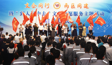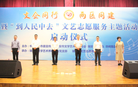 5月23日,恰逢中国第六个文艺志愿者服务日,由瑞安市委宣传部、市文联、市总工会联合主办的“文企同行,两区同建”暨“到人民中去”文艺志愿服务主题活动在华峰正式启动。瑞安市副市长池万松,瑞安市委宣传部常务副部长谢骁,瑞安市总工会党组书记、主席林昌勋,瑞安市文联党组书记谢思孝,瑞安市文联主席郑洁等领导以及市文艺志愿者,文艺家和华峰集团员工代表等近400人出席活动。