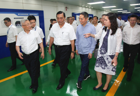 卢胡特部长一行先后参观了氨纶生产车间和集团形象展厅。“where are the people?”刚迈进氨纶生产车间,望着纺丝生产线有条不紊地运转着,却很少看见有员工在里面进行操作,卢胡特颇为好奇并疑惑地问道。在一旁的尤小平通过翻译向卢胡特先生解释说:“现在的生产线和以前完全不一样,不再是‘人海战术’,而是装备升级和‘机器换人’,随着新一代技术和制造业的加速融合,生产效率得到大幅提升。”话音未落,移步到前方DCS控制室的卢胡特先生,看着员工通过屏幕进行实时生产操作控制时,他恍然大悟道:“哦,原来人都在这里,这里的自动化程度很高。”