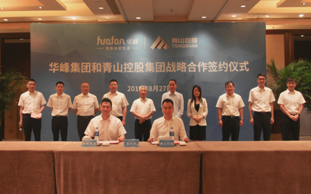 8月27日上午,华峰集团与青山控股集团在温州香格里拉大酒店签订“走出去”战略合作协议,这标志着两家温州起家的行业龙头企业,在参与“一带一路”建设上,结成了强强联合、优势互补、资源共享的战略合作伙伴。