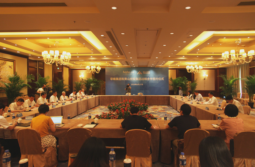 华峰集团董事局主席尤小平与青山实业集团董事局主席项光达在签约仪式上先后致辞,华峰集团董事长尤飞宇与青山控股集团董事长项秉雪分别在战略合作协议上签字,两企业相关领导出席了本次签约仪式。