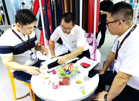 在为期三天的展会上,华峰合成公司主要展出环保概念系列产品,致力于引导行业加速迈向绿色制革。不同于行业其他供应商的是,华峰合成公司依托强大的平台资源,向广大客户提供华峰的环保产品组合:无溶剂、封闭型无溶剂、水性、PUR、TPU等五套方案及方案之间无限组合。值得一提的是,无溶剂搭配水性、高固搭配水性、全水性鞋革等产品,独具华峰创新特色,其环保、低能耗、高物性的绿色特质,引起现场国内外客户极大关注。