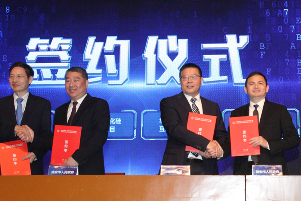 本次大会开幕式现场,一批重大产业项目、科创平台、人才合作团队项目在瑞安签约落地。集团总裁林建一上台与瑞安市常务副市长张榜桃,就华峰新材料工业互联网平台项目郑重签约。据悉,此项目总投资约10亿元,将构建汇集全球鞋业等新材料产业研发、设计、供应链采购、智能制造、贸易物流、项目孵化、公共服务、工业观光等全产业链为一体的高端创新服务项目。签约结束后,林建一在接受瑞安电视台专访时表示,华峰新材料工业互联网平台项目将着手产业规划、建设规划和运维规划的顶层设计,希望通过工业互联网的赋能,推动产业链、创新链、服务链、金融链的“四合一”,推进区域产业高端集聚、协同发展并向价值链高端迈进,助力瑞安经济高质量发展。