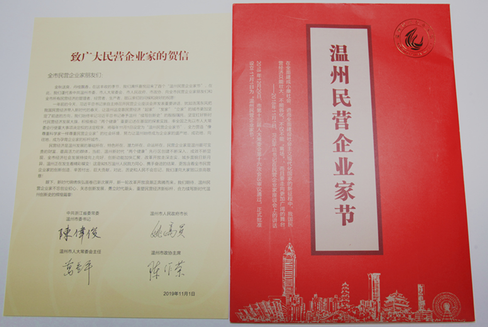 11月1日,也就是“民营企业座谈会”召开一周年之际,温州迎来了首个“温州民营企业家节”。就在去年的11月1日,习近平总书记在民营企业家座谈会上强调了支持民营经济发展的必要性和重要性,极大提振了民营企业家的发展信心。去年12月份,温州市人大常委会表决通过了关于同意设立“温州民营企业家节”的决定。