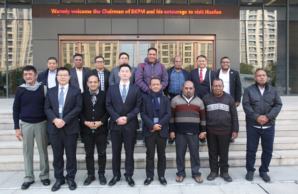 继上半年印度尼西亚佐科总统亲切接见华峰集团董事局主席尤小平,印尼海洋统筹部长卢胡特访问华峰后,12月4日下午,印尼投资协调委员会主席巴利同印尼巴布亚省省长卢卡斯到访华峰。集团董事长尤飞宇、集团总裁林建一热情接待了远道而来的贵宾。双方就在印尼市场的业务合作交换了意见,并对后续产业项目落地建设的具体事宜进行了交流。
