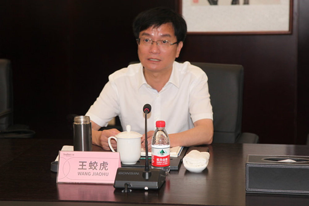 在集团董事局主席尤小平、集团总裁林建一等领导的陪同下,王蛟虎一行先后参观了集团形象展厅和氨纶生产车间。王蛟虎表示,华峰集团用不到30年的时间,实现了行业性的跨领域发展,创新发展、坚毅果敢的企业精神,值得学习。