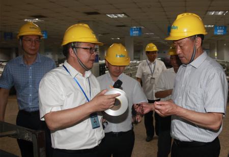 调研组一行先后参观了集团形象展厅和氨纶公司生产车间,聆听了集团总裁林建一对企业发展历程、企业文化及企业安全生产工作的详细介绍。