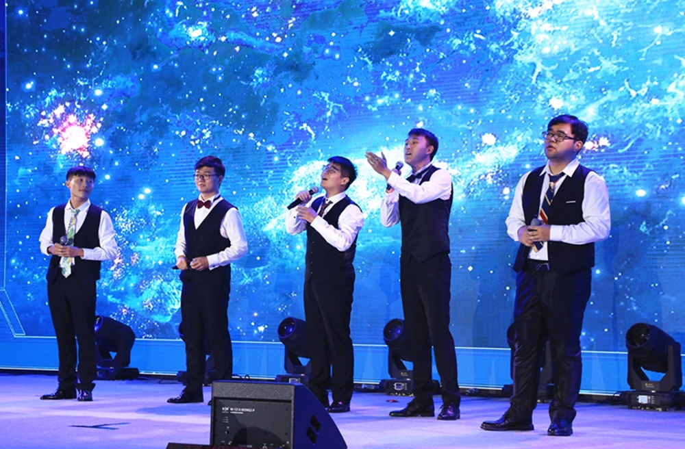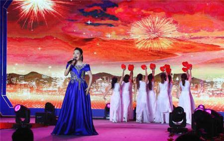 本次晚会邀请了两位“大碗”级的歌唱家来到现场为晚会助阵。北京歌舞剧院独唱演员米靓老师一连三首《三生如初见》《心海》《我和我的祖国》,壮美激昂的歌声中,深情展现了对伟大祖国的礼赞与致敬。