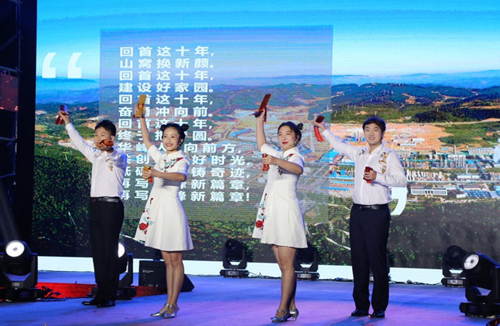 十年耕耘,十年收获。大屏幕上,一个个经典时刻振奋人心,重庆基地带来的快板《十载春秋绽芳华》重温了华峰人在重庆涪陵这片热土上的“华峰速度”、“华峰精神”和“华峰奇迹”!