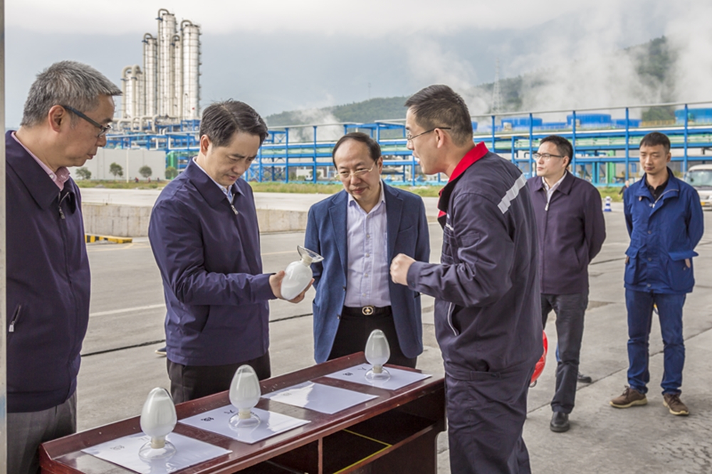 10月18日下午,重庆市副市长郑向东一行调研重庆华峰,重庆华峰化工副总经理苗迎彬等公司领导热情接待来宾一行。