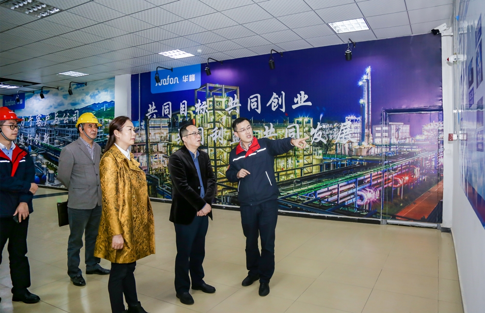 10月26日,重庆市科技局副局长牟小云一行调研重庆华峰。华峰重庆氨纶总经理于志立、重庆华峰化工副总经理苗迎彬等领导热情接待来宾一行。