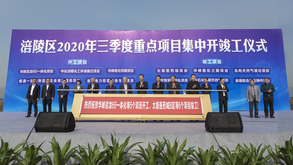 日前,涪陵区第三季度重大项目集中开竣工仪式在重庆华峰尼龙66一体化项目现场如期举行,这标志着华峰氨纶三期项目顺利竣工,华峰尼龙66一体化项目、华峰氨纶四期项目正式开工。
