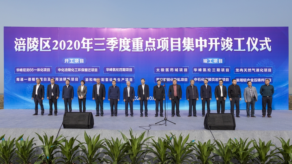 重庆市政府副市长陆克华、涪陵区委书记周少政、区人大常委会主任李景耀、区政协主席徐志红、区委副书记周波和华峰集团董事局主席尤小平、集团副总裁陈恩之等政企领导出席仪式。仪式由区委副书记、区长种及灵主持。