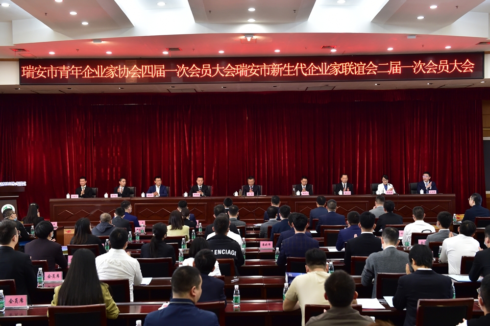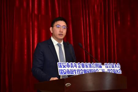 瑞安市委副书记、市长秦肖,温州团市委副书记邱智强出席此次会议并讲话,勉励市青企协(新生代)在传承中创新,在创新中发展,扛起“勇立时代潮头、争做时代先锋”和“服务中心大局、服务企业成长”的使命担当,进一步发挥桥梁纽带作用,真正成为政府与企业的“联系人”和青年企业家的“贴心人”。