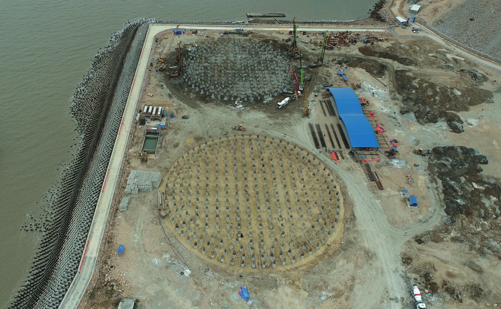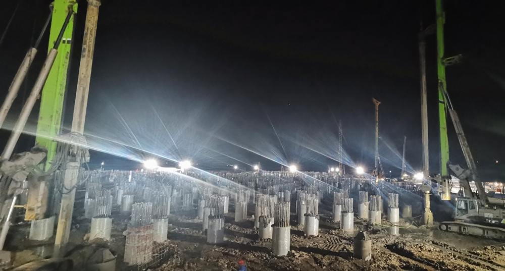 据了解,华港LNG项目罐区场地地质结构复杂,岩面埋深起伏较大,桩设计直径为1.2米,桩长深浅不一,最长达56米,嵌岩最深达5米,钢筋笼为通长,主筋最大直径Φ32,混凝土等级为C40P8。工程采用4台国内先进的360型旋挖钻机施工,实行“灌注桩+短柱”一次浇筑成型技术。在施工过程中,华港LNG项目指挥部克服各种不利因素,通过完成“三通一平”,提前策划施工方案,合理调整施工顺序,健全项目HSE管理体系,重视过程质量监督,加强入场培训等多项关键措施,全面保障项目的有序顺利推进。