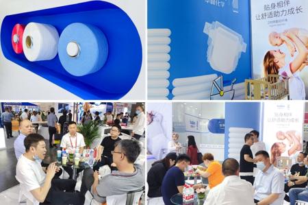 展会中,华峰化学展出的“千禧”牌卫材用氨纶纤维,可替代传统的橡胶材料,该产品具有弹性好,柔软度高等优异性能,不仅有效提高了客户生产效率,还大大降低了纸尿裤的生产成本。同时,该产品还可根据客户需求,进行定制不同规格和性能的产品,实现大丝卷包装,并具备丝卷退绕性能优良、色彩可定制、力学性能优异和可侧退等特点,深受当天前来洽谈的纸尿裤生产厂商亲睐。