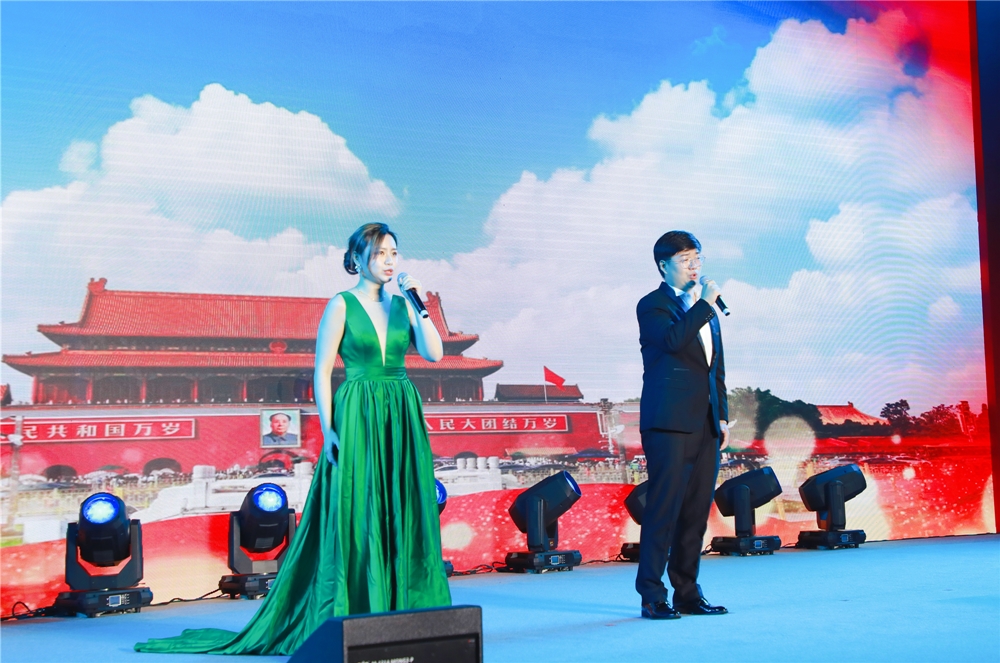 全场党员用力挥舞着党旗和国旗,用满怀爱党爱国情愫的歌声,述说着对党百年华诞的祝福。