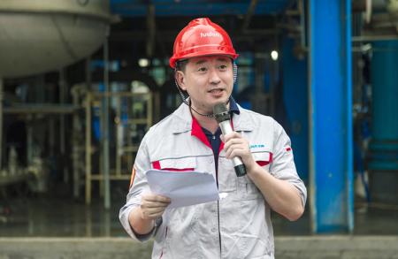 紧接着,重庆华峰化工常务副总经理苗迎彬代表项目指挥部作了表态发言,他强调,各部门、各承建单位要继续发扬以我为主、时不我待的精神,严格落实安全生产要求,确保项目顺利开车运行。