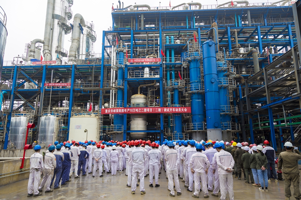 为全面部署项目开车前各项工作,鼓励建设者再接再厉,全力以赴确保项目如期开车运行。7月7日上午9时38分,重庆华峰聚酰胺年产10万吨己二腈项目(二期)调试开车动员大会顺利举行。集团董事长尤飞宇,集团副总裁、重庆华峰化工总经理陈恩之等集团和公司领导,公司各部门代表,监理及承建单位代表等近260人参加动员会。