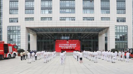 林建一、叶其伟、陈斌、朱炫相、尤金明、邹宗钧等集团及各公司领导与100余名参赛队员代表出席了开幕式,应邀担任消防比武裁判员的瑞安市消防救援大队战士代表也见证了开幕盛况。