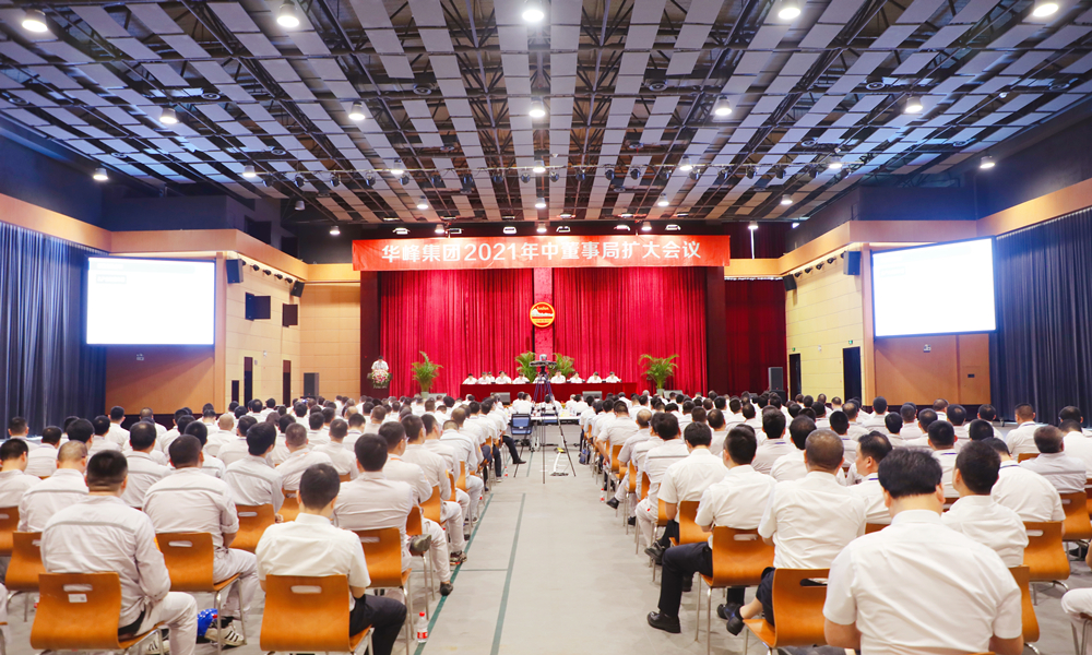 7月23日,华峰集团2021年度第二次董事局扩大会议在集团行政大楼附属楼多功能厅隆重召开。集团董事局常务董事与各公司高管及中层正职干部近350人,分五个会场通过视频联线的方式参与此次会议。会议由集团副总裁尤飞锋主持。