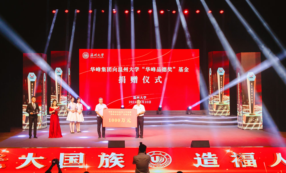 华峰集团董事长尤飞宇在致辞中有感而发,他说,十年来,“华峰品德奖”初心未改,不断发掘身边的品德榜样,用一份份信得过、学得到的品德事迹,充分展现了温大深厚的育人底蕴和温大人的优秀品格,为温大广大师生和社会各界树立了鲜活榜样,也为企业加强员工道德实践及教育最具说服力的鲜活教材。他号召大家要与道德同行,向榜样看齐,共同做文明道德风尚的传播者、践行者和引领者,用生活中的每一件善举,汇成崇德向善的时代潮流。