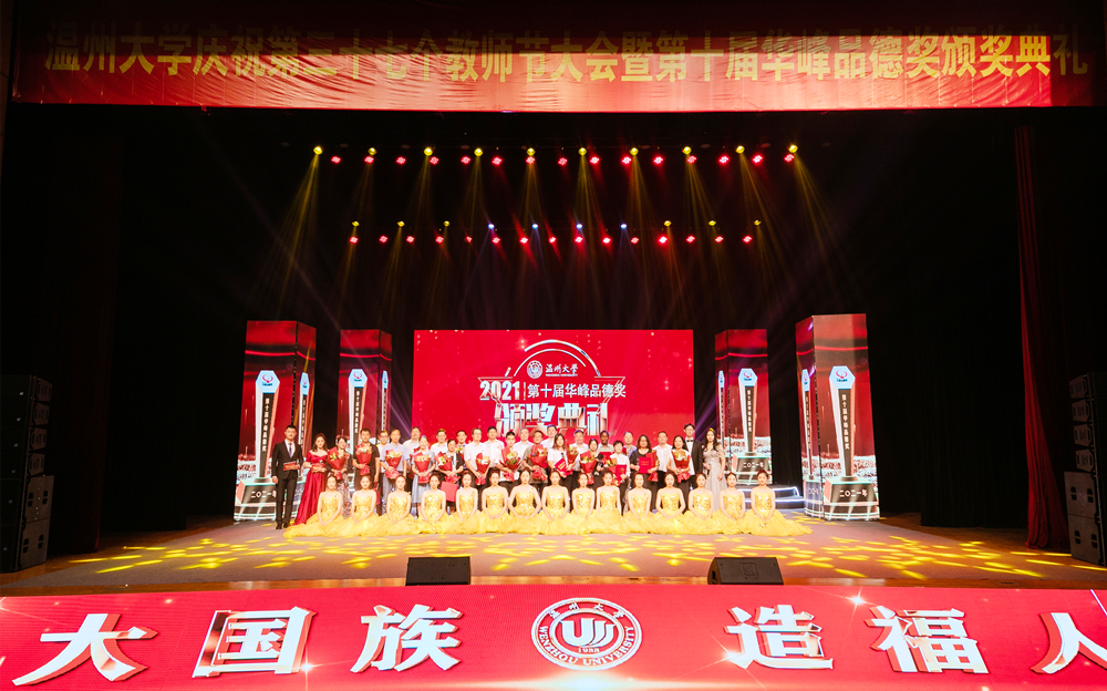 9月10日下午,温州大学庆祝第37个教师节大会暨第十届“华峰品德奖”颁奖典礼在育英大礼堂举行,近千名温大师生代表齐聚一堂,共同聆听获奖代表的感人事迹,共同见证温大“品德之花”再次绽放。