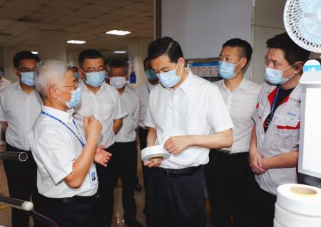 刘小涛一行先后参观了集团形象展厅和氨纶生产车间。每到一处,刘小涛都详细了解企业在产品研发、科技创新、项目推进等方面情况。集团董事局主席尤小平一一向刘书记作了汇报。