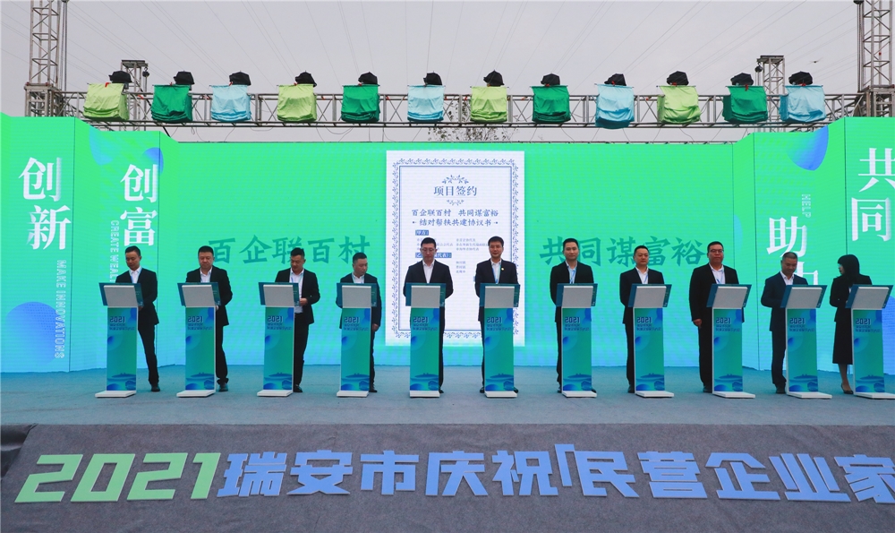 大会最后,瑞安市委书记麻胜聪在讲话中指出,民营企业是瑞安发展的金字招牌,民营企业家是瑞安人精神的重要传承者。希望广大民营企业家坚守实业创大业、坚持创新强主业、坚定理想助伟业,争做实干瑞商、奋进瑞商、担当瑞商,在瑞安高水平打造“青春都市、幸福瑞安”,争当高质量发展建设共同富裕示范区先行标兵的新征程上彰显担当、展现作为。(李其中)