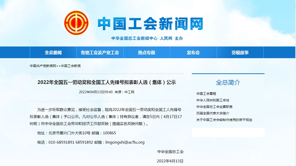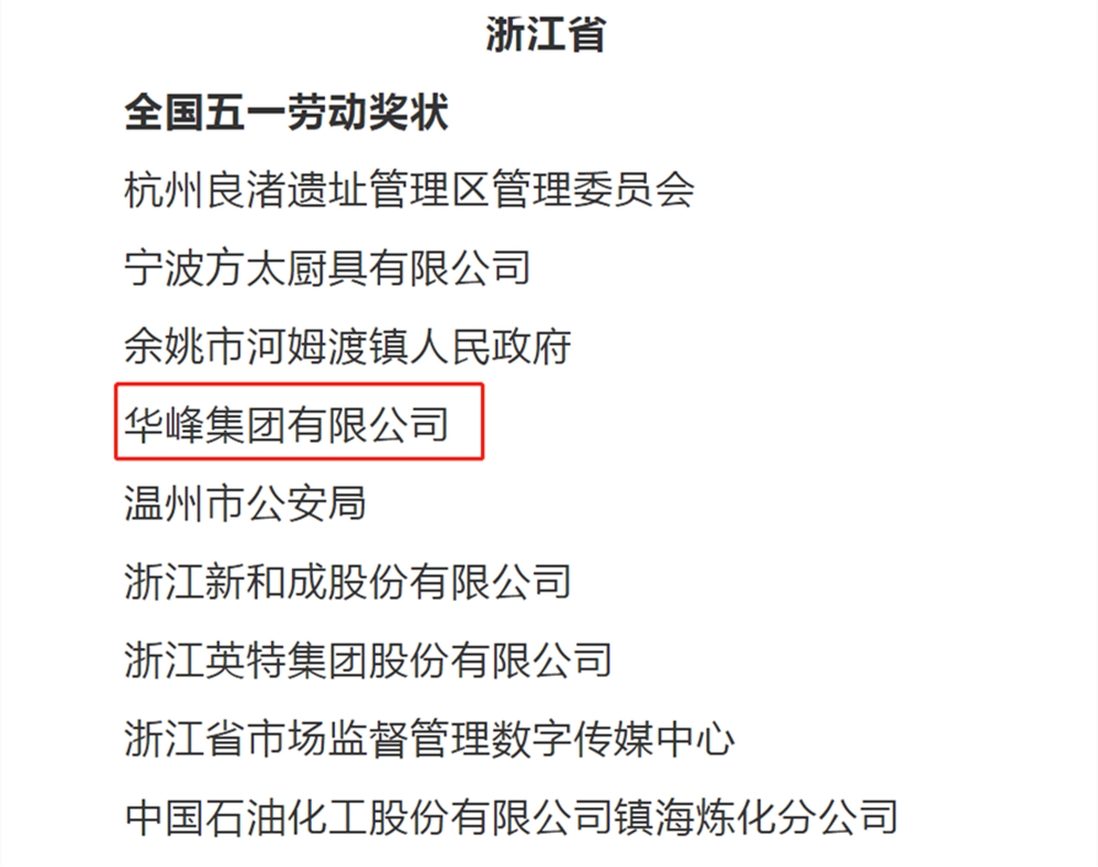 4月13日,中华全国总工会公示2022年全国五一劳动奖和全国工人先锋号拟表彰人选(集体)名单,华峰集团有限公司成功入围“全国五一劳动奖状”公示榜单,成为温州市唯一入围的企业单位。