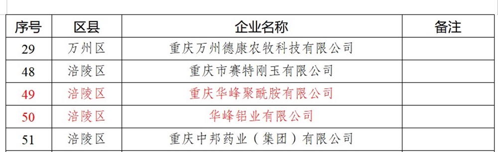 日前,在重庆市经济和信息化委员会发布的2022年重庆市“专精特新”中小企业名单中,重庆华峰聚酰胺有限公司和华峰铝业有限公司顺利入选,目前华峰重庆基地已有3家“专精特新”企业。