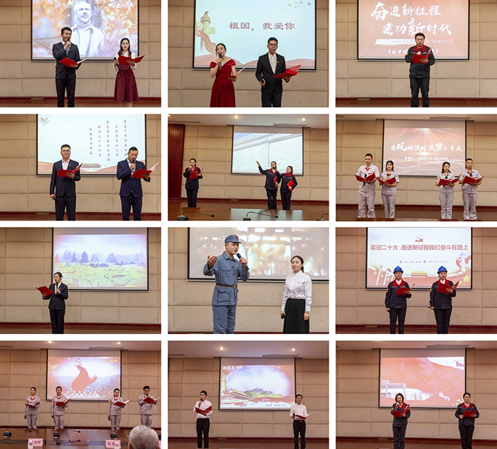 “同一艘船,改变的是舵手,不变的是航向。我们必将:不忘初心,牢记党的使命;砥砺前行,报国服务人民。”比赛在诗歌《船》的朗诵中拉开序幕。随后,来自基地各党支部的19支参赛队伍围绕主题,以集体或个人诵读的形式,深情诵读了《我们奋斗在路上》《向您报道》《诗颂风华》等红色爱国诗歌。或重温历史,或歌颂祖国,或致敬英雄,或畅想未来,或抒发感想……在优美激扬的背景音乐中,各位诵读者以激情澎湃的诗文充分表达了华峰人对党和祖国的无比热爱、对党领导下祖国取得举世瞩目辉煌成就的无限赞美,充分展现了华峰人踔厉奋发、笃行不怠、团结向上、实干担当的精神风貌。