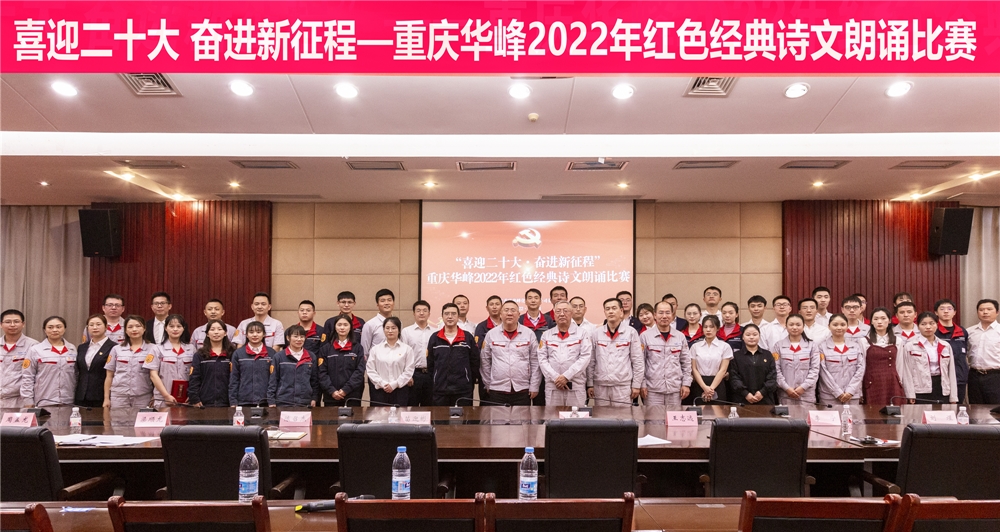 为迎接党的二十大胜利召开,热情讴歌党的百年奋斗历程和革命先辈的丰功伟绩,展现党员和广大职工队伍朝气蓬勃、积极向上、踔厉奋发的良好精神风貌。10月14日,华峰重庆基地党委组织开展了“喜迎二十大 奋进新征程”红色经典诗文主题朗诵比赛。重庆华峰化工党委书记,集团副总裁、华峰化工总经理陈恩之等基地高层领导,各公司党群工作负责人、党员及员工代表近200人参加活动。