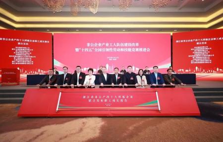 4月12日,非公企业产业工人队伍建设改革暨“十四五”全国引领性劳动和技能竞赛推进会在浙江召开。大会上,作为浙江省非公产改十大样板企业,华峰集团总裁林建一代表企业登台联合发布职工成长报告,展示浙江省非公企业产改基层实践中涌现的标志性成果。
