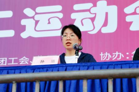 华峰化学公司财务总监孙洁代表冠名单位在开幕式上致词,并提出了三点希望:一是希望各位运动员努力发扬“团结协作、顽强拼搏、敢于斗争、勇争一流”的精神,赛出风格、赛出水平;二是希望各位裁判员本着“公平、公正、公开”的原则,严肃执裁,公平判决,以扎实的作风和敬业奉献的精神为比赛增添光彩;三是希望全体运动员在比赛中本着“友谊第一,比赛第二”的目的,以“更快、更高、更强”的奥林匹克精神激励自己,用实际行动全力跑出企业与自身发展的“加速度”。