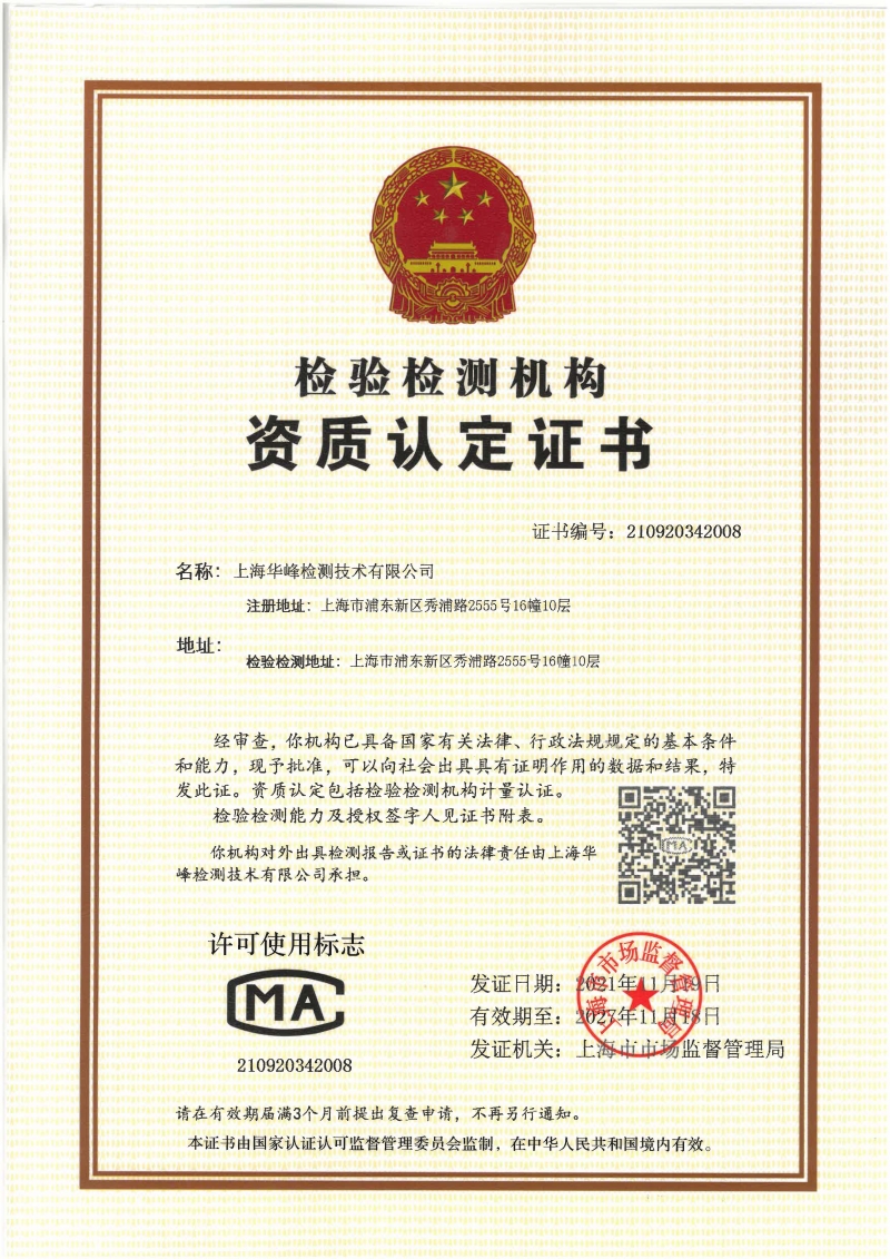 此次获此权威认证,是对华峰一直以来持续投入综合检测分析能力建设的认可,也体现了华峰在技术创新上的科学态度和精益求精。未来,上海华峰检测技术有限公司将继续按照CNAS实验室管理体系要求进行维护和运行,不断加强实验室综合技术和质量体系管理,持续不断地自我完善和精进提升,一如既往地坚持“质量为先,信誉为重,管理为本,服务为诚”的质量方针,为每一位需求方提供值得信赖的专业检测服务。(周静 秦升美)