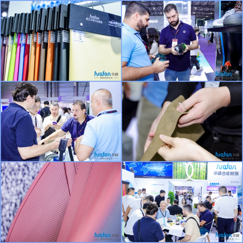 为期三天的展会上,华峰合成树脂主要展出环保概念系列产品,致力于引导行业加速迈向绿色制革转型。不同于行业其他供应商的是,华峰合成树脂公司依托强大的集团平台资源,向广大客户提供源自华峰的环保产品组合:生物基、无溶剂、水性、PUR聚氨酯树脂等四套方案及方案之间可无限组合。