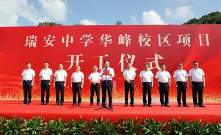 “我宣布,瑞安中学华峰校区项目正式开工!”9月8日9时15分,随着瑞安市委书记李坚一声响亮的开工号令发出,标志着瑞安中学华峰校区项目正式进入建设实施阶段。